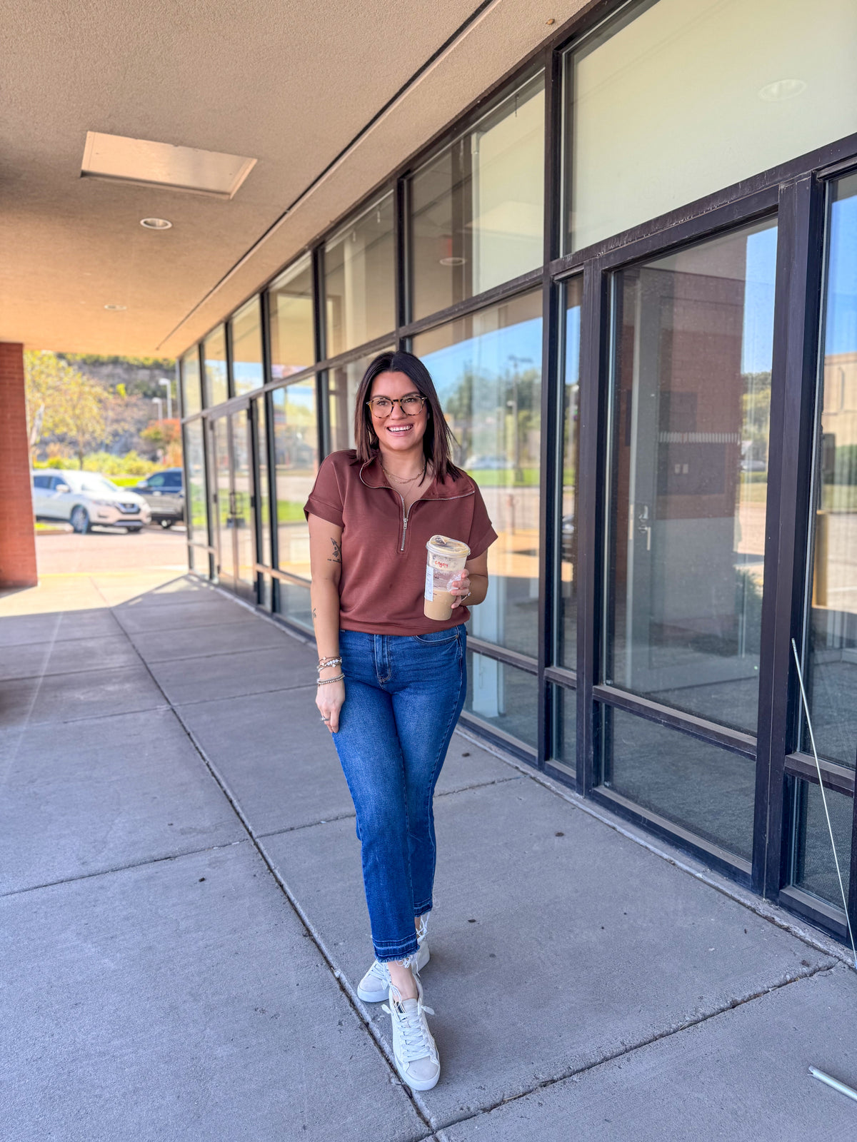 Look Your Best In This Trendy Top. A Mock Neckline Leads To Half-Zip Up Detailing And A Sleeveless Cut Bodice. The Top Features A Slightly Snug Fit And Ends In A Banded Hem. Pair With Wide Leg Trousers.