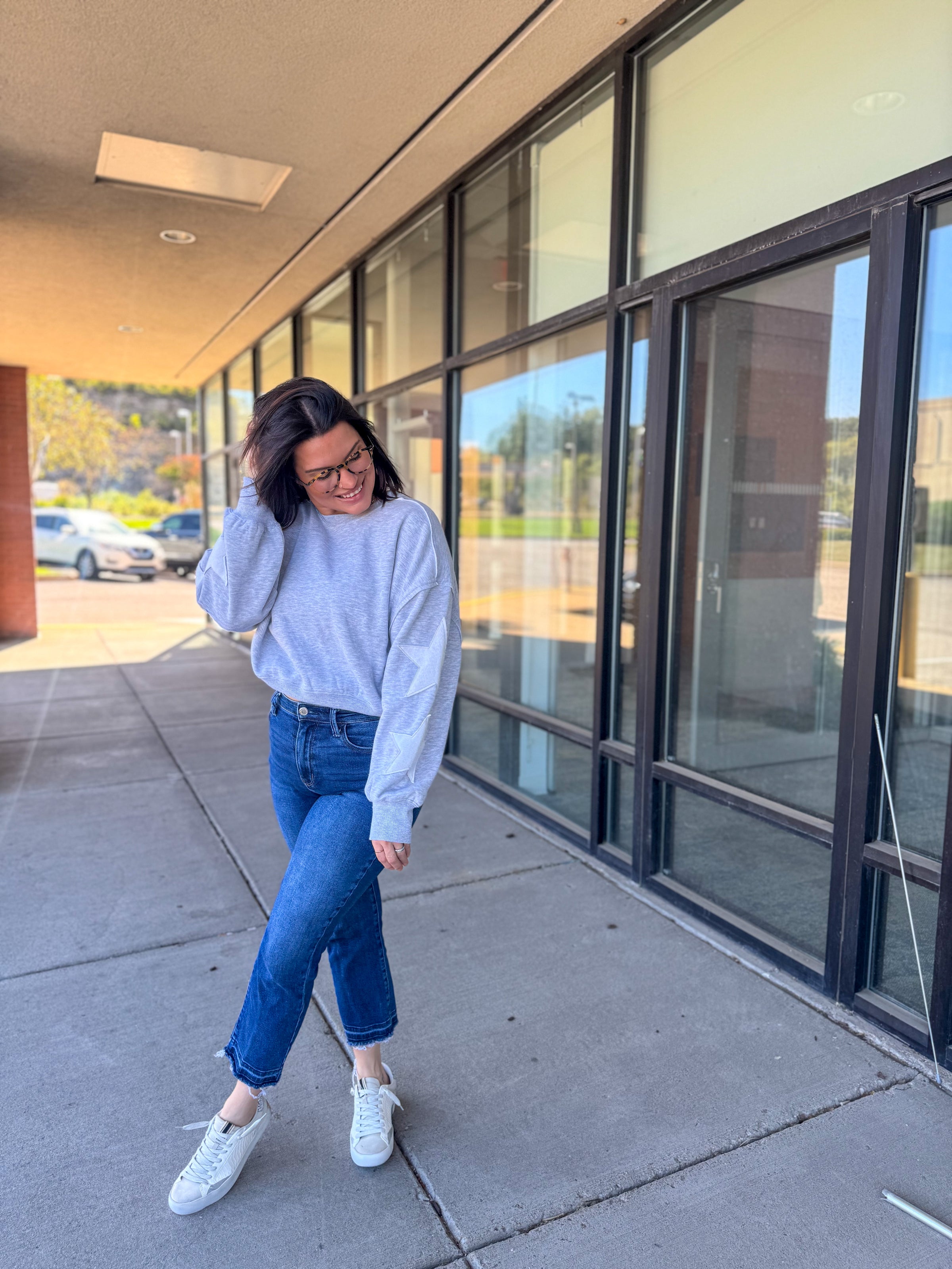 Elevate your casual wardrobe with this unique crewneck sweatshirt, adorned with star patch on the sleeves for a touch of whimsy. The relaxed fit offers unmatched comfort, making it perfect for casual outings or cozy evenings at home. Pair it with your favorite denim or layer it under a structured jacket for a fashion-forward look. Ideal for transitioning seasons, this piece blends style and practicality seamlessly.