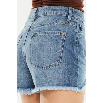 Introducing the KanCan Straight Outta Cancun Denim Shorts! These vintage-inspired shorts feature a medium-wash, distressed denim for a laid-back and relaxed look. Perfect for a day out, these shorts will give you a stylish and carefree vibe!