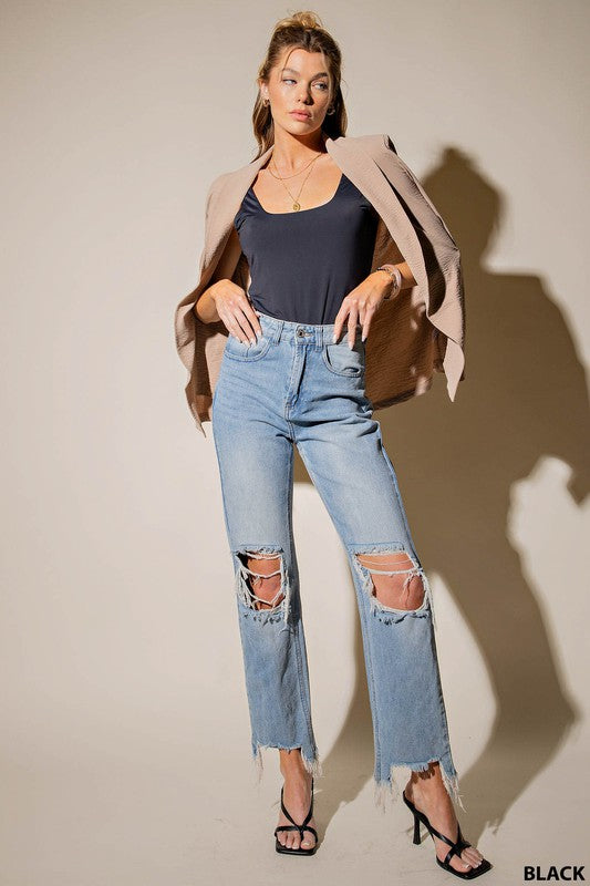 Welcome to Greater Than This newest release: the Double Layered Seamless Bodysuit! Whether you're heading out to a night-in or day-trip, this is the bodysuit of your dreams. With its solid black color, double layered fabric and seamless edges, this piece stands out from any other. The high neckline with scoops and plunges gives you a soft square neck and back detail that not only enhances your silhouette but ties together any look effortlessly. Crafted with extra care for optimum comfort, it can easily be worn all day without feeling restricted or overheated. So go ahead - enjoy an upgrade to your wardrobe, because with Greater Than This Double Layered Seamless Bodysuit, you know you're getting nothing less than perfection.