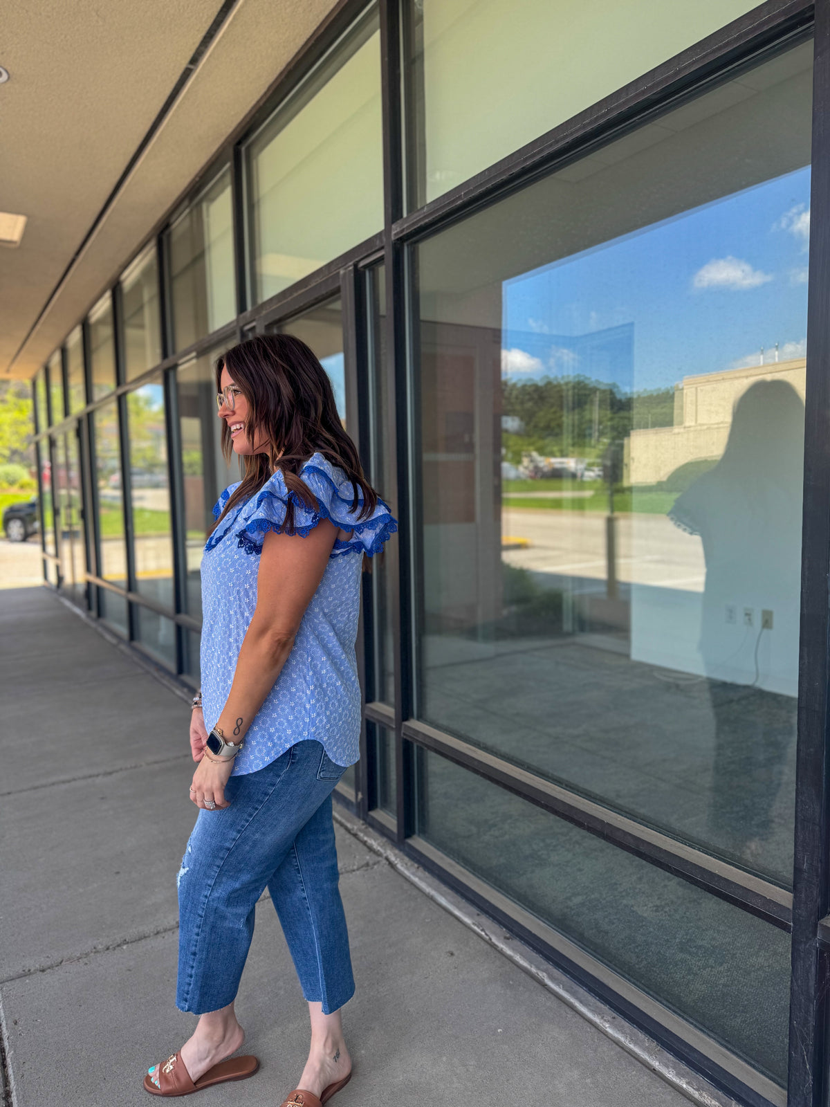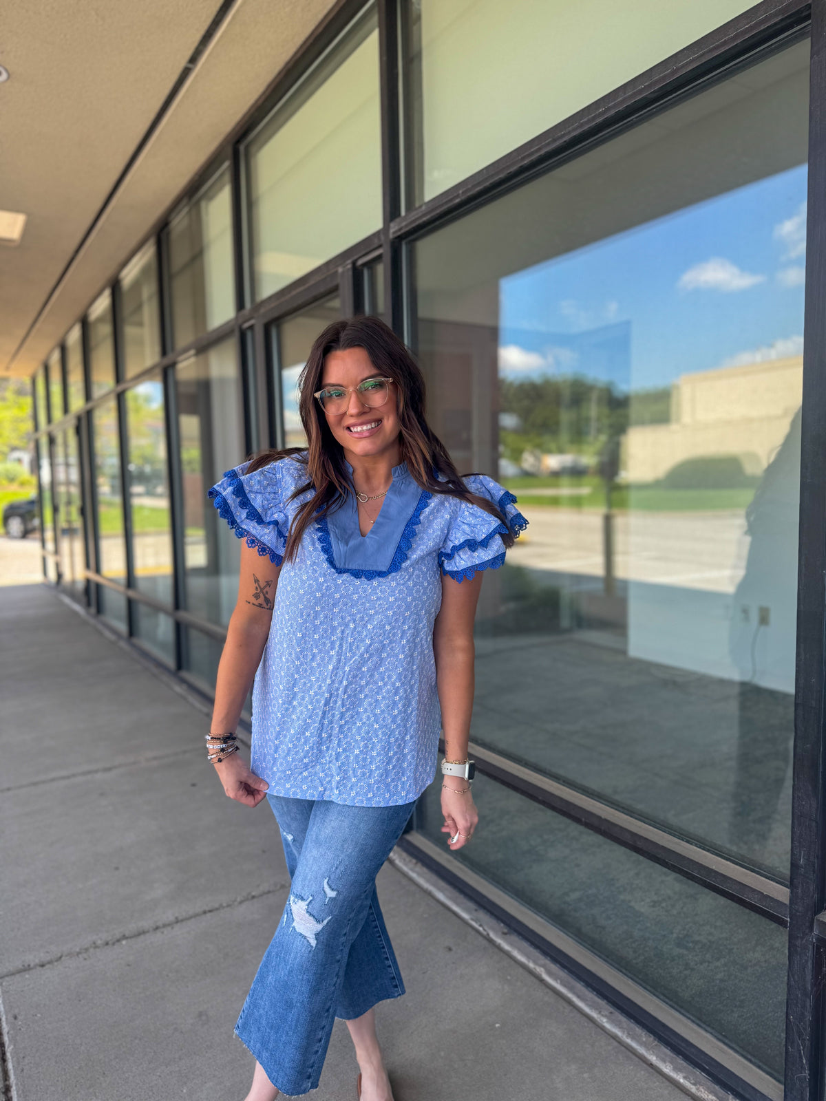 - The flutter sleeves add a touch of femininity