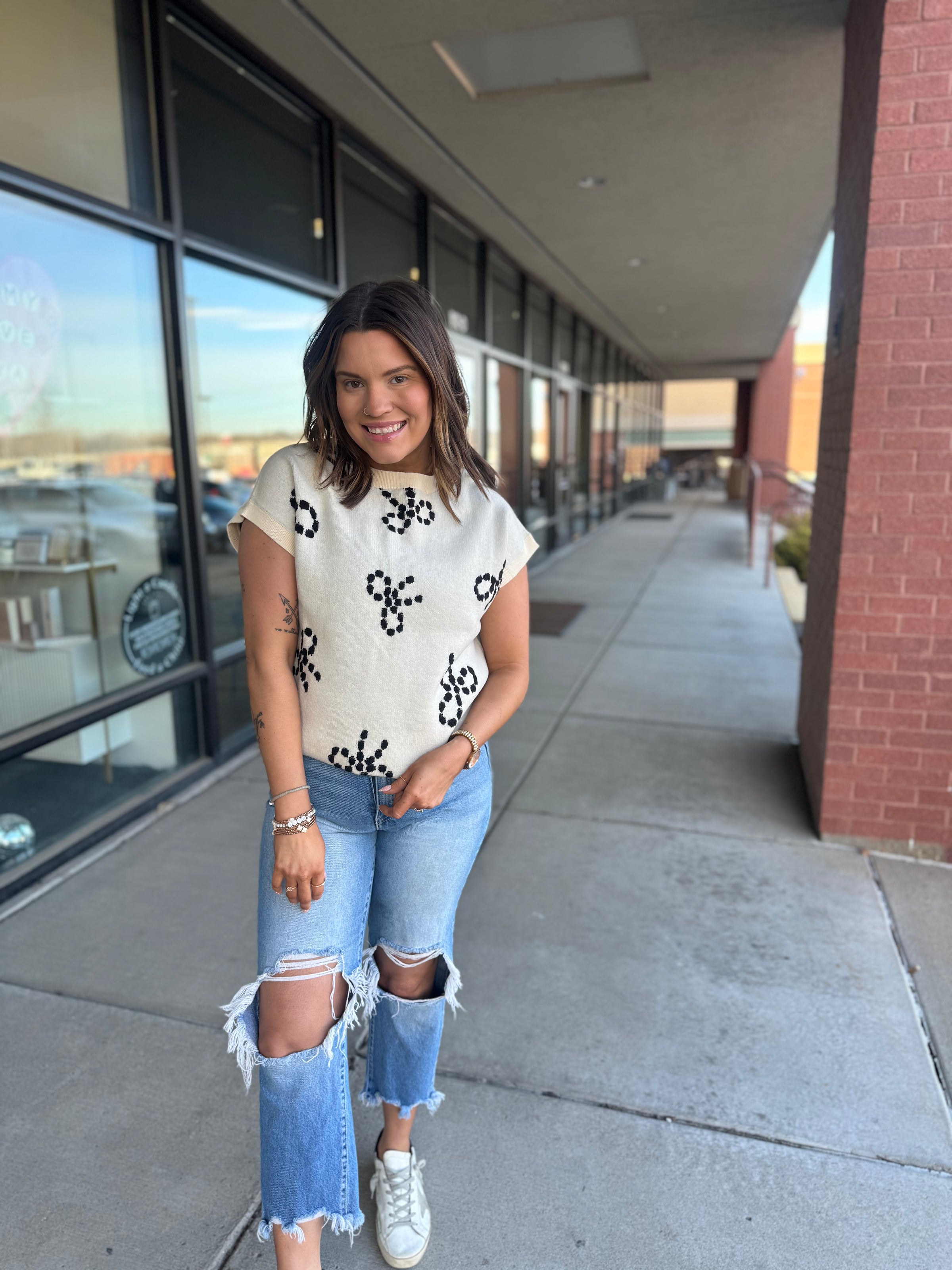Clean lines meet cozy structure in this crew neck sweater top, designed to elevate your everyday look. With its soft yet sculpted knit, cap sleeves, it brings just the right mix of comfort and sophistication. Easy to dress up or down, this is your go-to piece for chic layering or a sleek standalone moment.